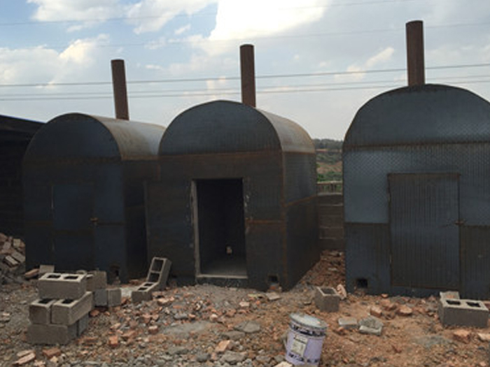 土窯的建造要選資源豐富,運輸方便,坡度較小的空敞地作窯址,靠近水源,土壤要堅實, 好是粘土。在選好的窯址上,畫一個等邊三角形,每邊長約2.1m。在線內向下挖1m深左右,即為炭化室。炭化室前端略高于后端,在炭化室后面正中挖煙道腔和排煙孔,